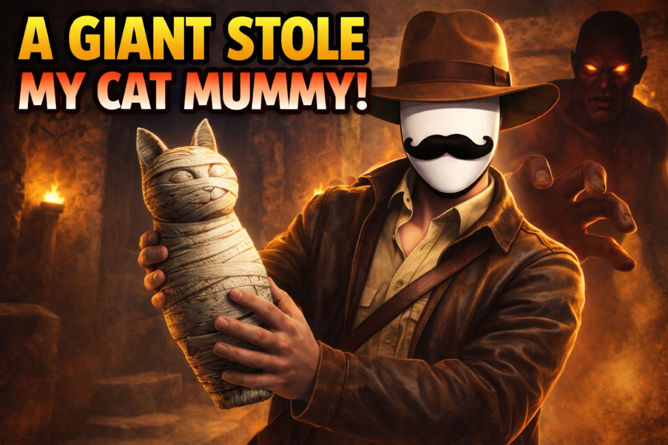 In today’s episode, everything was going fine… until a literal GIANT showed up and stole my CAT MUMMY. 😤